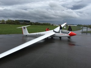Am Samstag haben einige Piloten die kurze Wetterberuhigung am Nachmittag genutzt um den gerade fertig gewordenen Schulungsdoppelsitzer ASK21 gleich ausgiebig zu testeten. Das Flugzeug wurde über die Wintermonate komplett innen und außen neu lackiert und ist erst am Freitag von einem Mitglied aus der Werkstatt zurück überführt worden. Nach den umfangreichen Arbeiten ist es nun technisch wieder in Neuzustand.